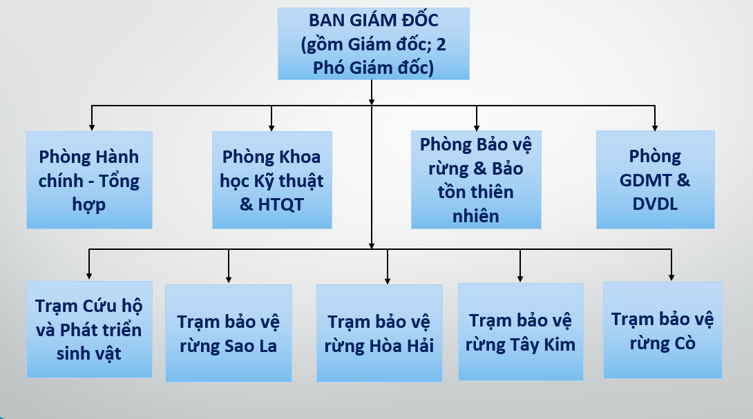 Tổ chức bộ máy hiện nay theo Quyết định số 706/QĐ-UBND ngày 4/4/2025 của UBND tỉnh Hà Tĩnh về việc Kiện toàn cơ cấu tổ chức bộ máy của Vườn Quốc gia Vũ Quang